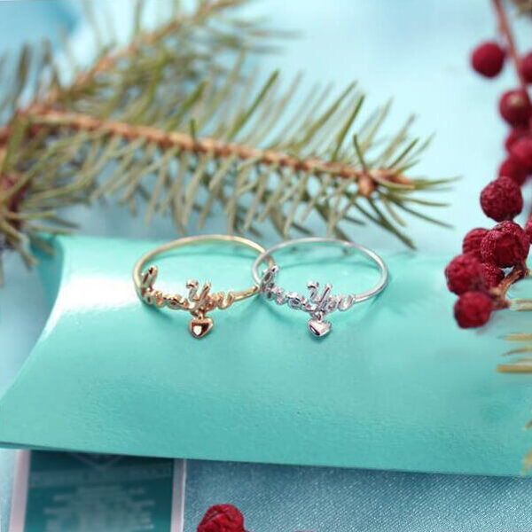 Молодежное золотое кольцо с тонким ободком и надписью Love you. Оно будет аккуратно украшать Вашу руку и напоминать о любимых, душевных моментах. Выполнено из красного золота 585 пробы, вставки отсутствуют. Дополнительным сюрпризом послужит маленькая подвеска в виде сердца, которая крепится к изогнутой надписи на кольце. Подобное украшение выглядит очень оригинально и его можно сочетать с другими похожими по стилю изделиями.