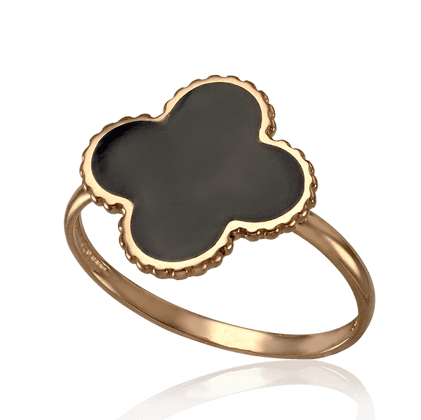 Золота каблучка з чорною емаллю Чотирьохлистник 032252