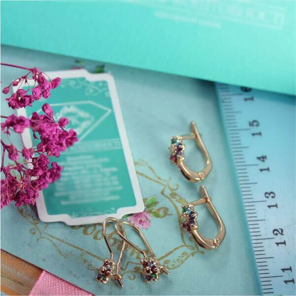 Для кожної дівчинки проколювання мочок вух - подія, безумовно, важлива. Відразу ж після процедури краще вставити найбільш звичайні золоті сережки з французькою застібкою (круглим вушком). Наприклад, такі як представлені сережки із червоного золота 585 проби у вигляді квіточки. Зроблена із якісного золота, ця прикраса не викличе алергії. Конструкція золотих сережок така, що вони не будуть чіплятися за одяг, а це немаловажливо. Зручна металева «закріпка» дозволить швидко їх знімати-надягати, і, звичайно, не дасть улюбленим коштовностям загубитися. Золоті сережки прикрашені різнокольоровим цирконієм, що безумовно підніматиме настрій дівчинки та вноситиме в її життя яскраві фарби.