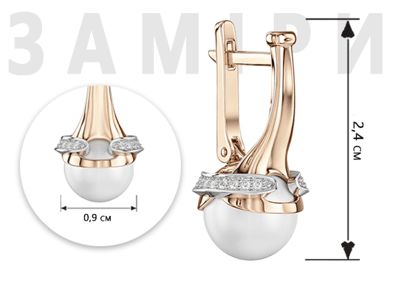 В центрі композиції — розкішна натуральна перлина, що підкреслює вишуканий стиль прикраси. Вставки з діамантів надають сережкам благородного блиску та створюють ефект дорогоцінного сяйва. Завдяки англійському замку виріб зручно сидить на вусі та надійно фіксується.